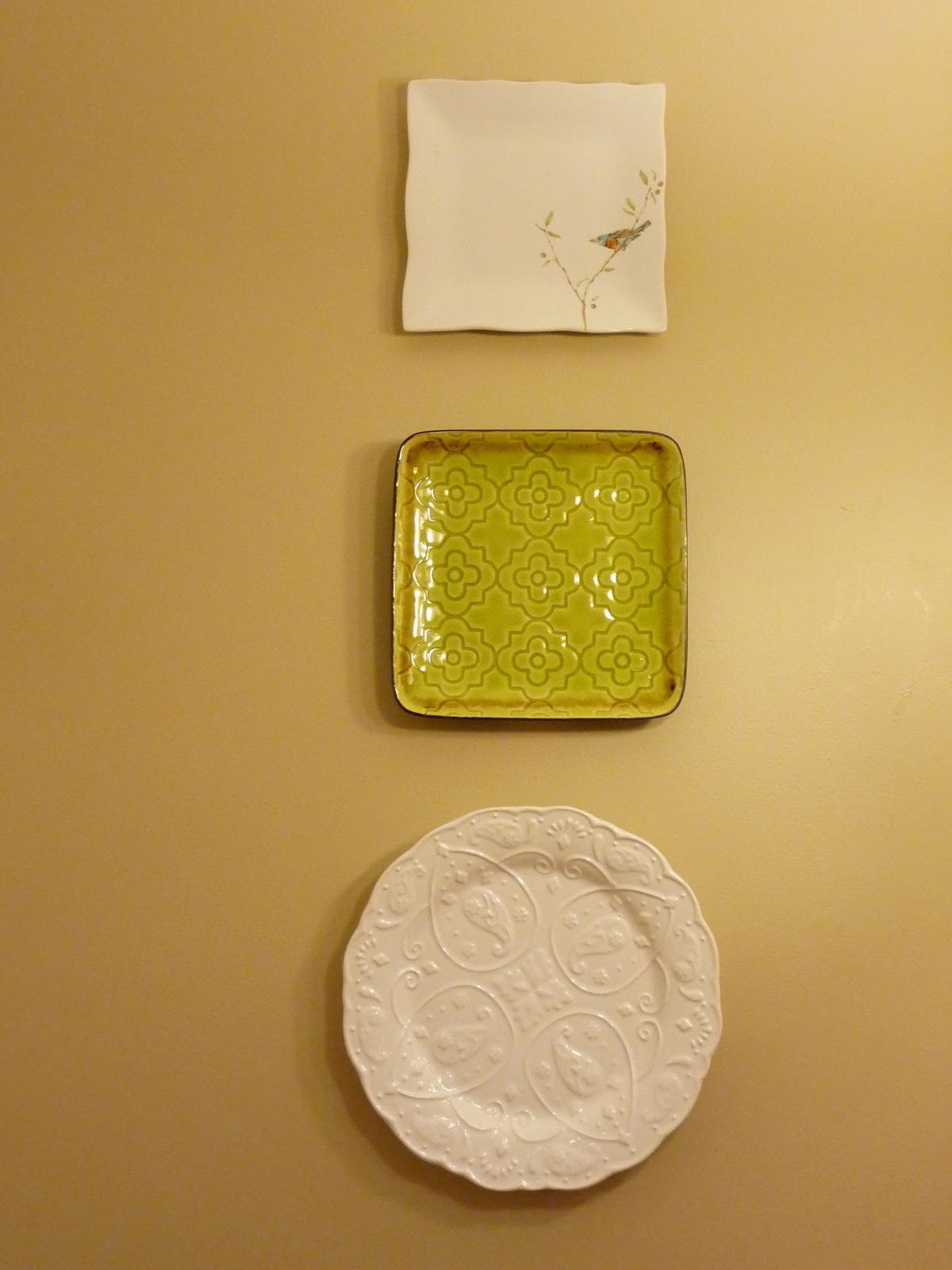 I came to a couple conclusions. I like plates. I like pretty plates. I like pretty plates on walls. I wanted pretty plates on the wall in my kitchen. I had the perfect spot near my kitchen table. I didn’t want an overwhelming number of plates, just a couple well placed ones that would add color and texture to my space. I hunted at my usual places and found these three from HomeGoods, Pier One and Target.