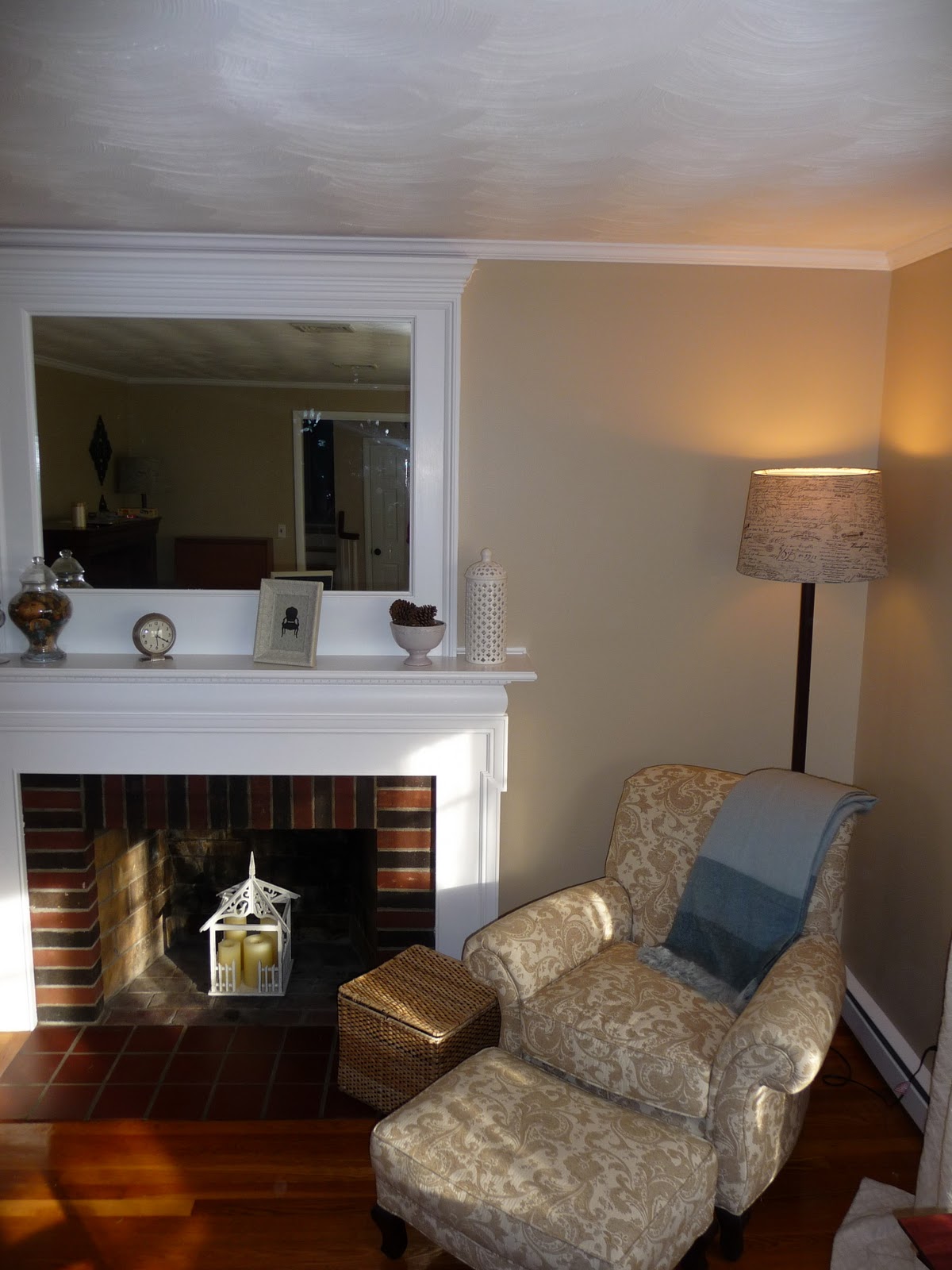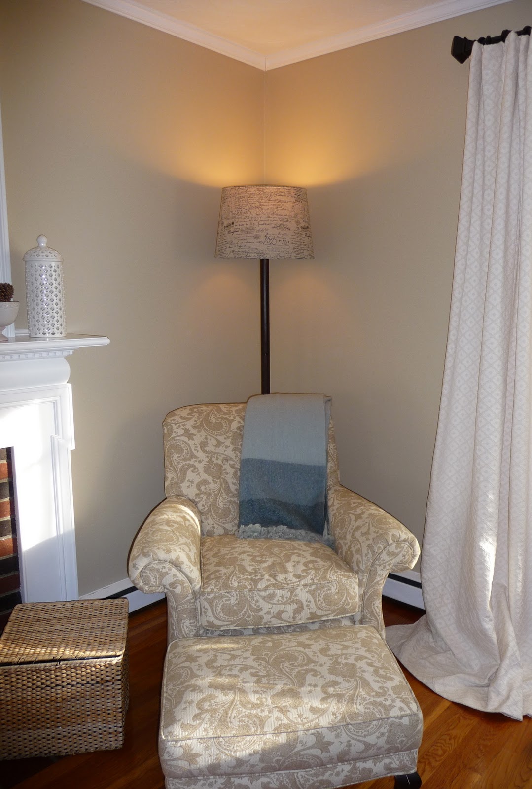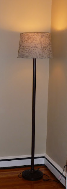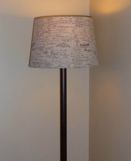 They gave off a warm glow to the room and all was well. Then, after 10 years I wanted a change. I contemplated sending them to the basement, but again, we have no overhead lights in the living room. On a lucky trip through Home Goods I came across two large lampshades for $15 each.