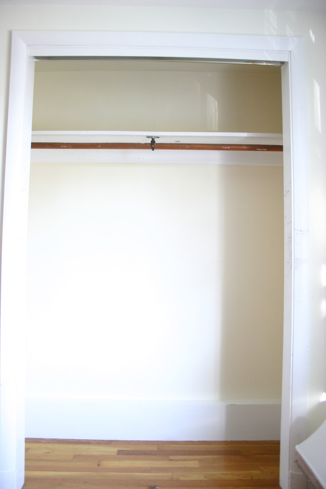 People have mixed feelings about getting rid of closet space so let me address that first. I’m not worried about resale since I don’t plan on going anywhere. I’ll put that one out there first. If you are planning on moving at all in the future this is still an option for you, just set the doors aside somewhere. You might not want to do the extensive job that I did if that is your plan.
