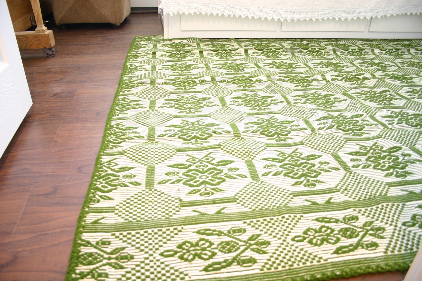 I got very nostalgic and excited seeing the blankets. Nostalgic because they brought back all these memories and excited because they were in a suitcase in my parent’s attic which meant they were up for grabs. I asked my dad if I could have them but not as blankets. I wanted to know if I could use them as rugs. I asked a couple ways just so all my bases were covered. If he said okay they would be used in a home with three kids and a dog. A lot could happen to them!